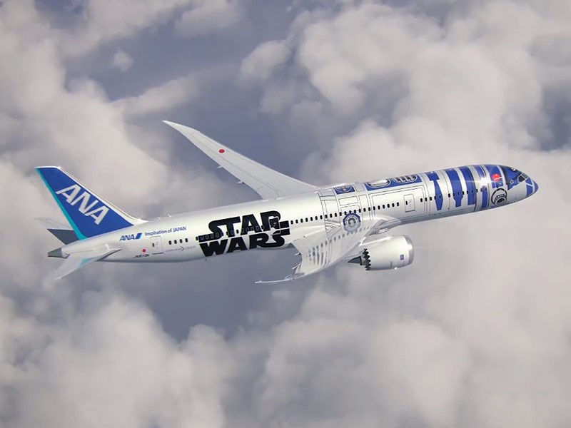Japonská letecká společnost All Nipon Airways (ANA) přichází ve spolupráci s americkou filmovou produkční společností Lucasfilm s nebývalou novinkou. Svá letadla totiž oblékne do pláště Star Wars, konkrétně do postavy robota R2D2.