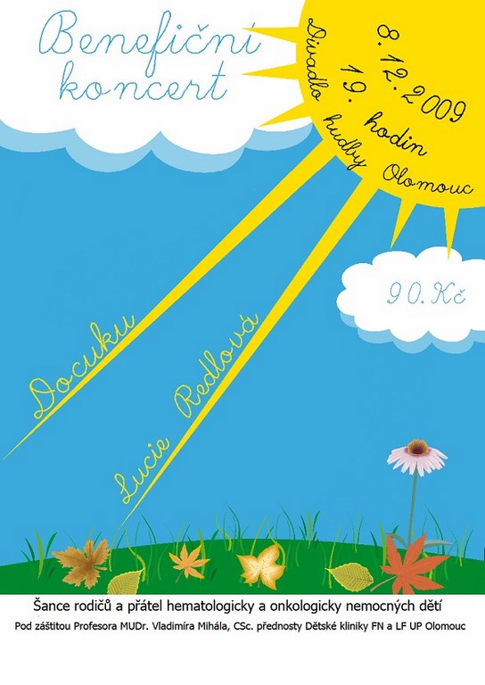 8. prosince proběhl v olomouckém Divadle hudby benefiční koncert s výtěžkem věnovaným na podporu hemato – onkologického oddělení dětské kliniky v Olomouci. Tuto akci uspořádali členové sdružení Šance a na pódiu vystoupili Lucie Rédlová a následně valašskomeziříčská kapela Docuku. Díky nim a všem ostatním návštěvníkům, kteří zaplnili téměř celý sál, vznikla příjemná předvánoční atmosféra za společnosti lidí, kteří svými devadesáti korunami pomohli a ač se to nezdá, pomohli hodně.