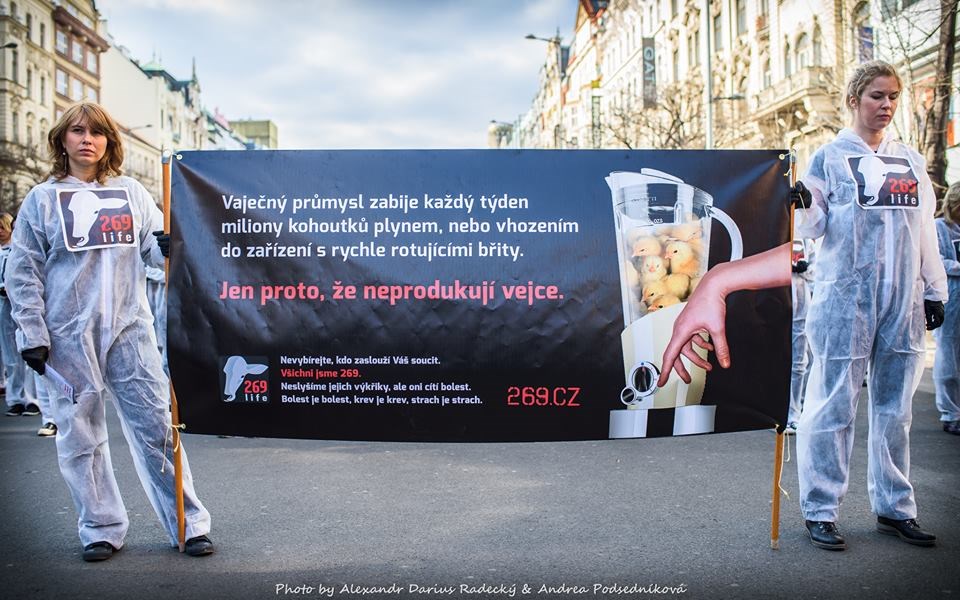 Olomouc – Aktivisté Hnutí 269 demonstrovali na Václavském náměstí v Praze. V rámci velikonočních trhů se snažili v pátek 27. 3. upozornit na praktiky vaječného průmyslu a zacházení se zvířaty.