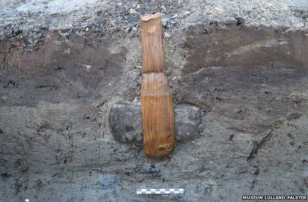 Dánským archeologům se od 14. listopadu podařila řada ojedinělých objevů. Při záchranném průzkumu na jihu země odkryli mezi pozůstatky pravěké osady zachovalé náčiní včetně dřevěných částí. Konkrétně našli 5 500 let starou kamennou sekeru, i s dřevěným topůrkem, pádlo nebo zbytky luků. Dřevo se přitom za obvyklých podmínek rozpadá velmi rychle a archeologům nezbývá, než skutečnou podobu věcí spíše odhadovat.