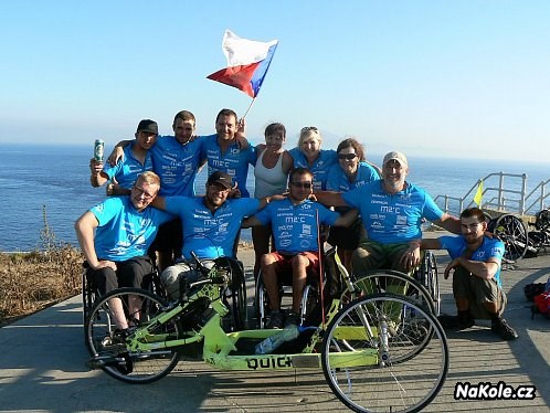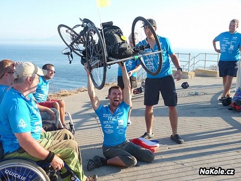 Handbiker Michal Šmíd po příjezdu do cíle – nejjižnějšího bodu Evropy. Z německých Brém do Gibraltaru jela skupina paracyklistů a doprovodných cyklistů na kole devatenáct dní.