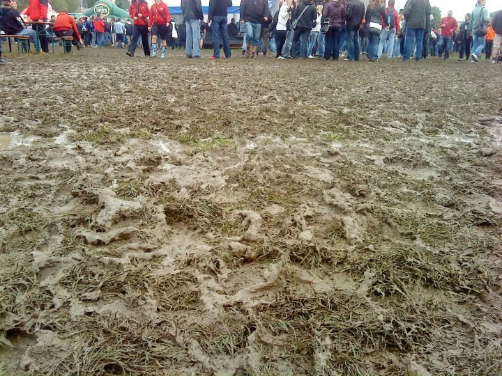 Celé dopoledne propršelo. Kolem druhé hodiny naštěstí déšť ustal, ale zanechal po sobě spoušť - bahno. To už se začínali trousit návštěvníci. S přibývajícím množstvím lidí, rostla i kvanta bláta, přestože si každý nějaké to kilo rozbředlé zeminy nedobrovolně nabalil na boty. Málokdo si tím nechal zkazit náladu. Někteří lidé se dokonce vybavili gumáky nebo podomácku vyrobenými návleky z igelitových tašek. Chuť na pivo také nechyběla. Přes třicet pivovarů nabízelo svůj lahodný mok. Náročnější pivaři, kterým nechutná pivečko z kelímku, měli téměř u každého stánku možnost koupě nejrůznějších kriglů a sklenic. Prošli jsme celý areál, abychom zjistili, co kde mají dobrého. Zarazil mne počet stánků s občerstvením. Jen tři pro tisícovku lidí! Tomu odpovídaly i ceny – klobáska či gyros za 70 Kč, kuřecí steak za 100 Kč. Kdo měl hlad, musel sáhnout hlouběji do peněženky. U občerstvení se tvořily fronty a bylo jen otázkou času, kdy začne jídlo docházet.