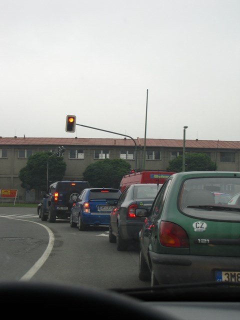 Ve 14:10 hodin mi problesklo hlavou, že na výběr špatných front nemám smůlu už jen u pokladen, ale i při výběru směru mého odjezdu z města. Během doby, kdy červená barva volá stop, má člověk spoustu času na přemýšlení. Může to chápat jako zlé znamení, spiknutí, válku strojů proti lidem, velký vykřičník upozorňující na zpomalení nebo jako semafor. Možností se nabízí nepřeberné množství, jakou si vybereme zůstává na nás.