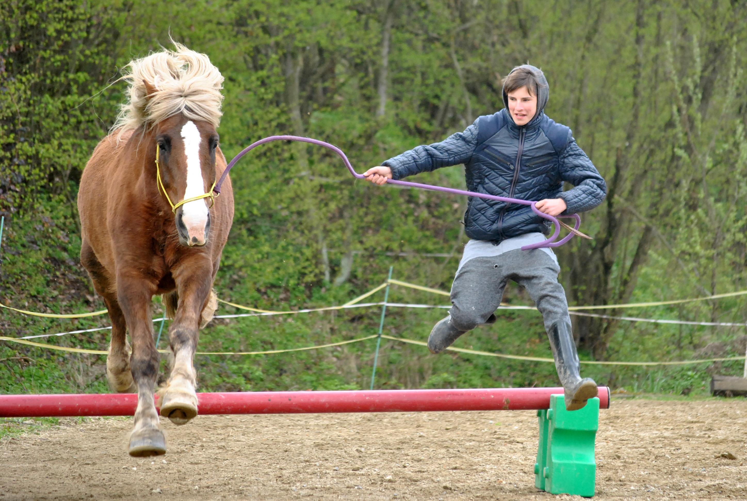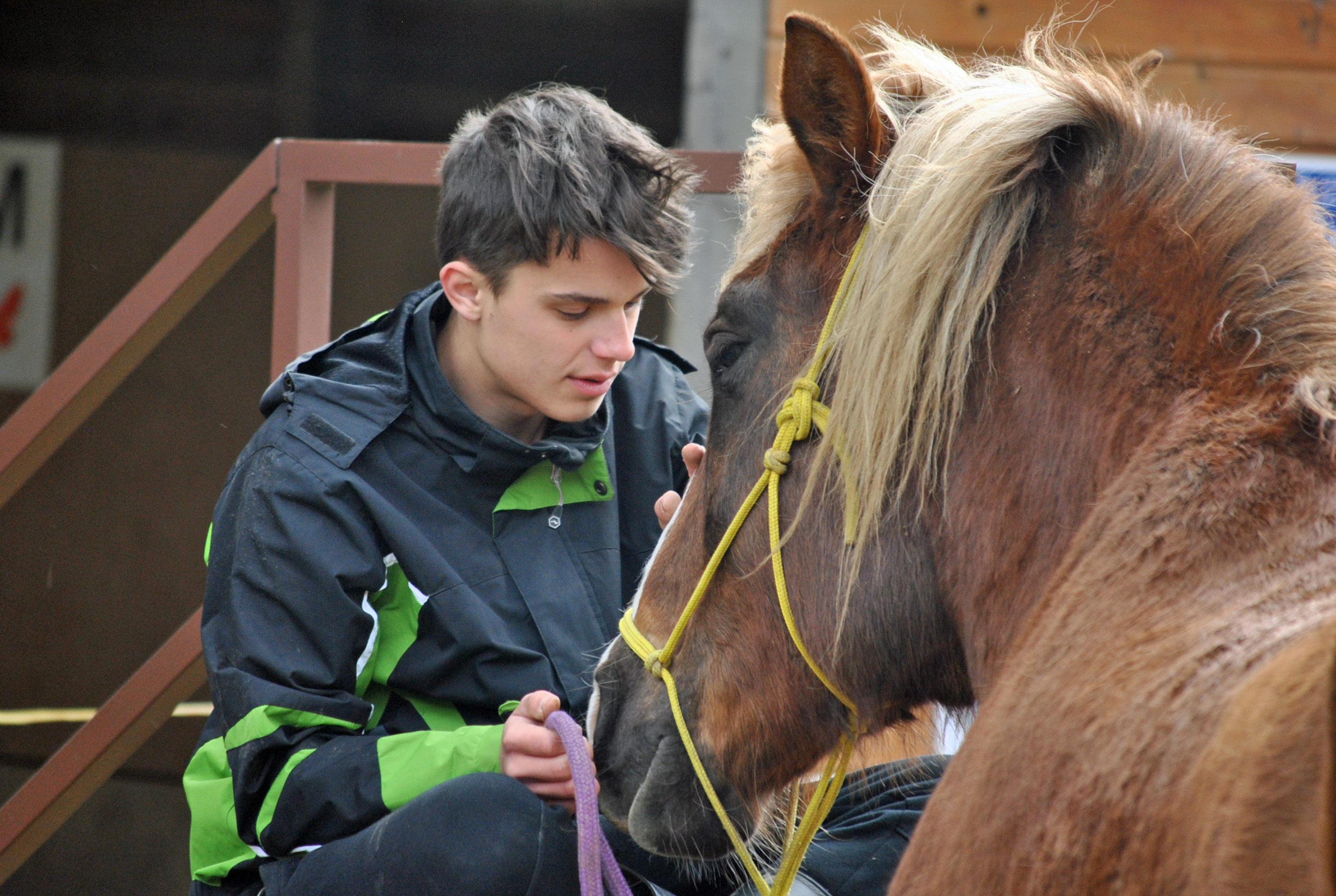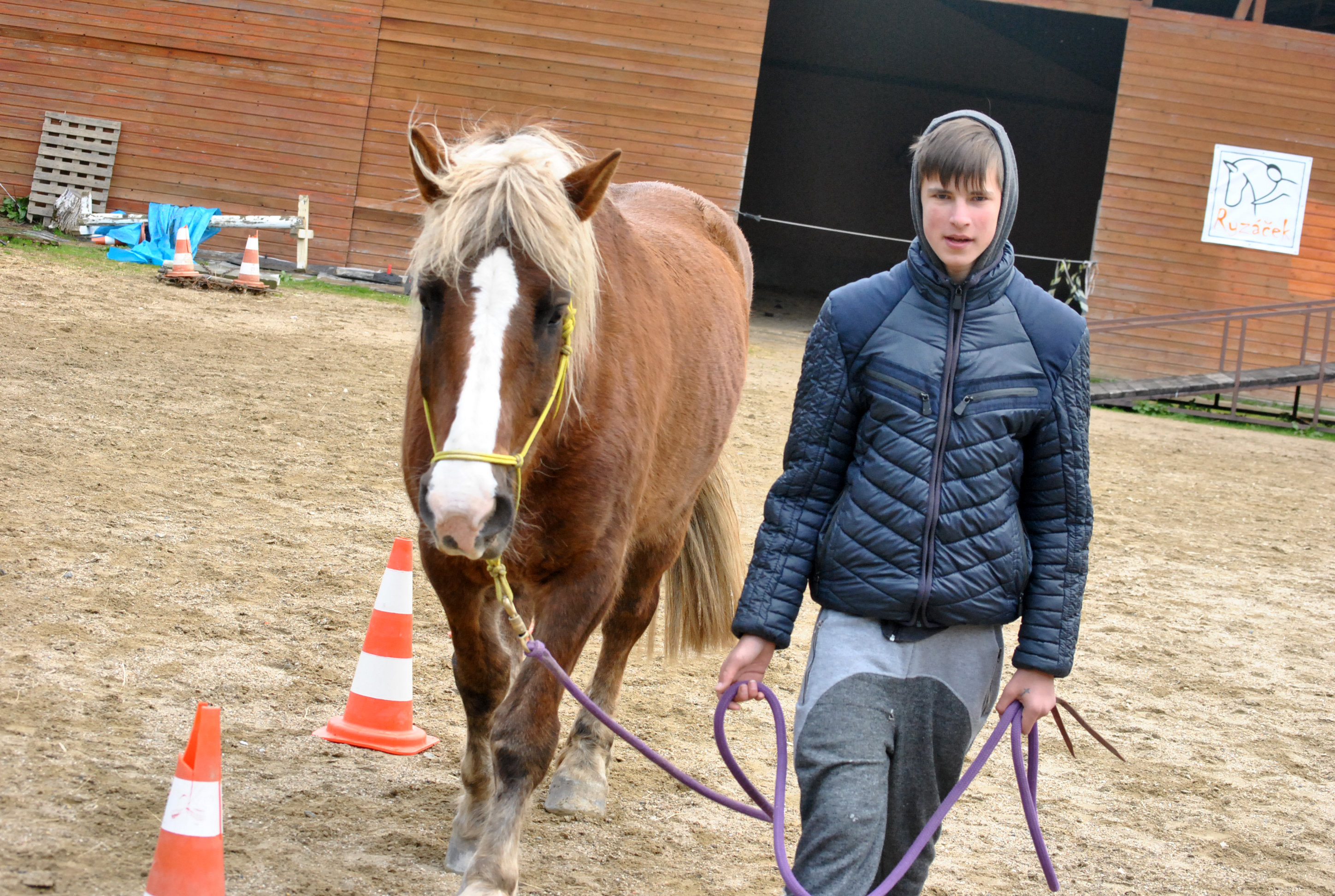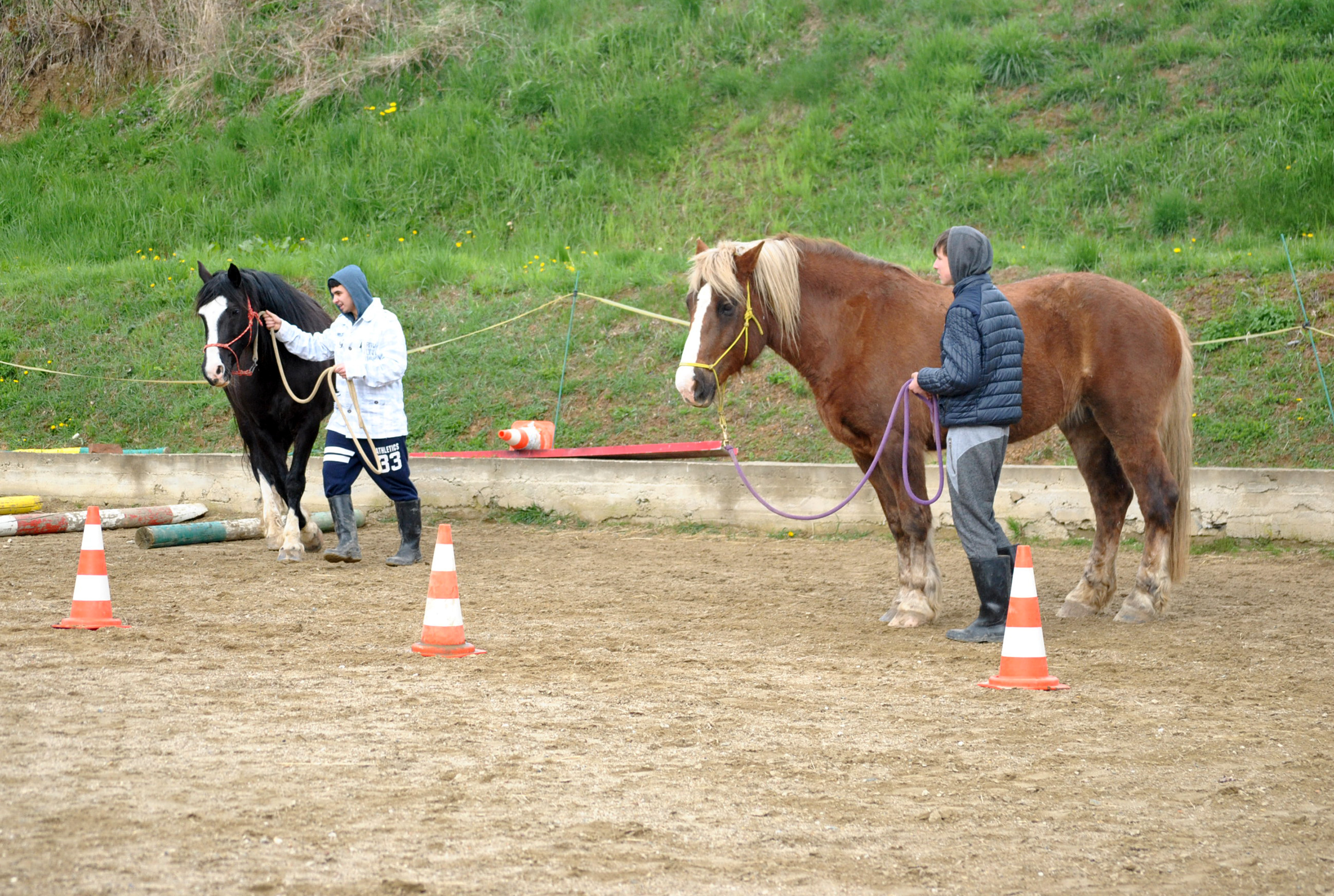 CHLAPCI Z VÝCHOVNÉHO ÚSTAVU DŘEVHOSTICE MAJÍ NA STAROST KAŽDÝ SVÉHO KONĚ. PŘI SLALOMU A PŘEKÁŽKOVÉ DRÁZE NABÝVAJÍ SEBEVĚDOMÍ A DOBRÝ POCIT Z POSLUŠNOSTI KONĚ. ZÁROVEŇ JE VELIKOST A LEKAVÁ POVAHA KONÍ NUTÍ MÍRNIT DIVOKÉ PROJEVY CHOVÁNÍ, UČÍ JE RESPEKTU A CITLIVOSTI.