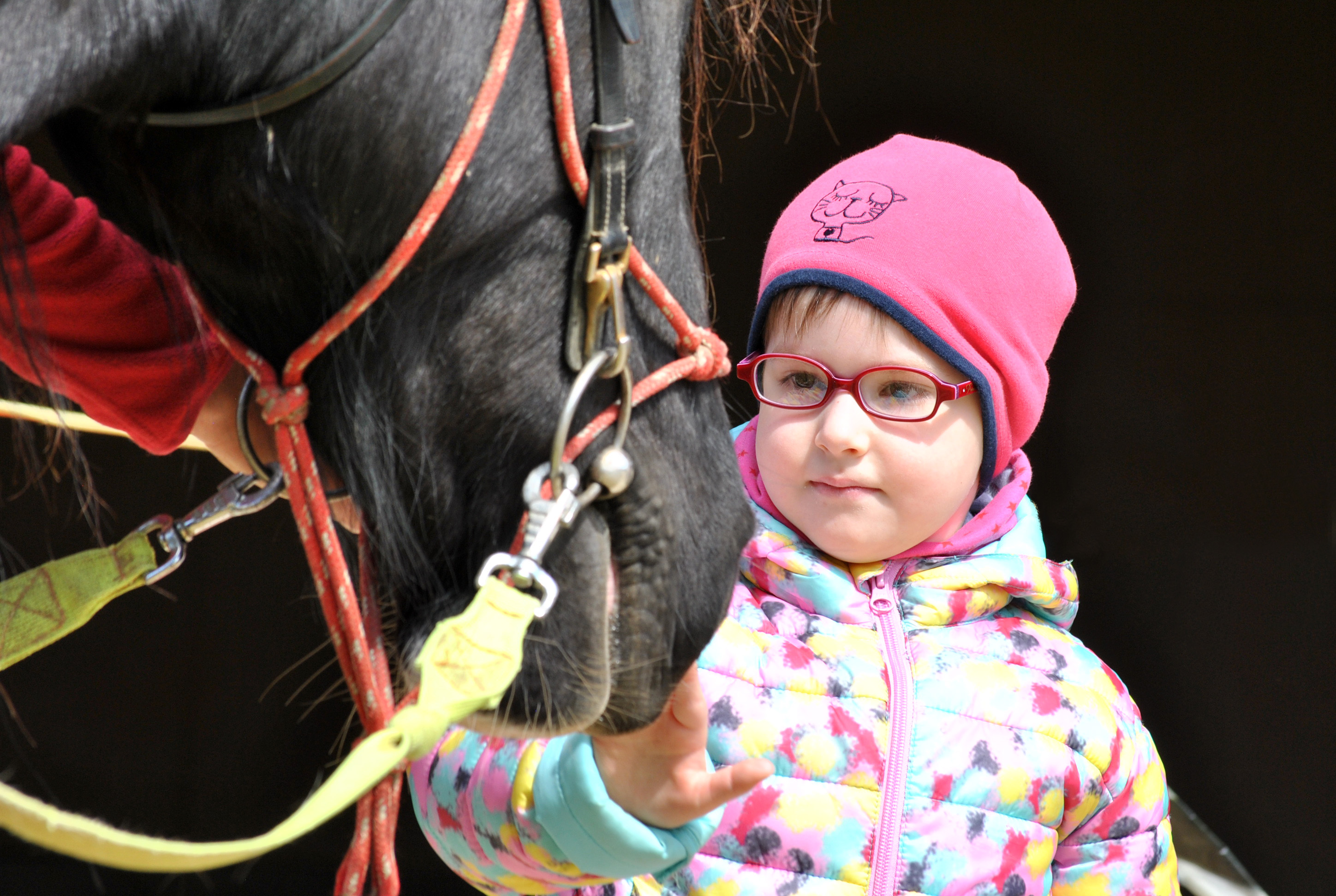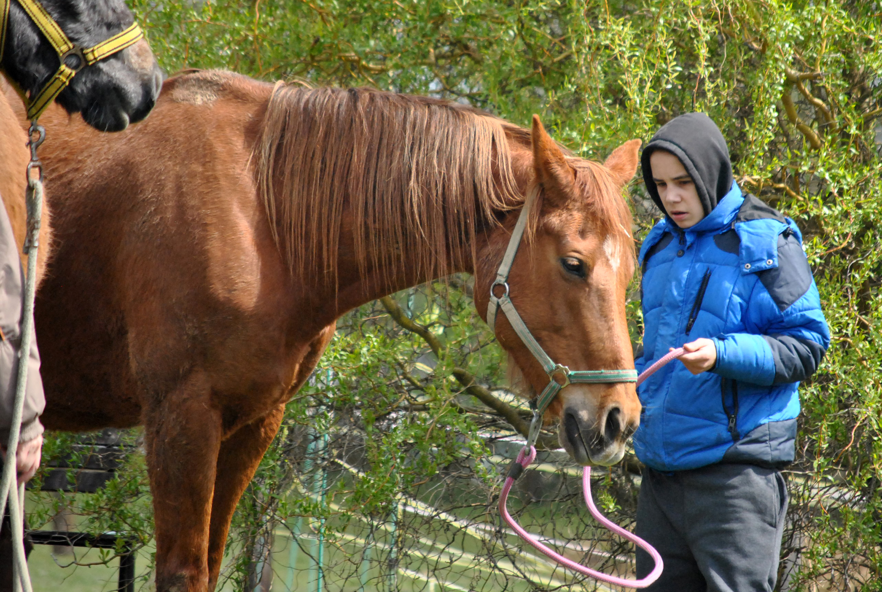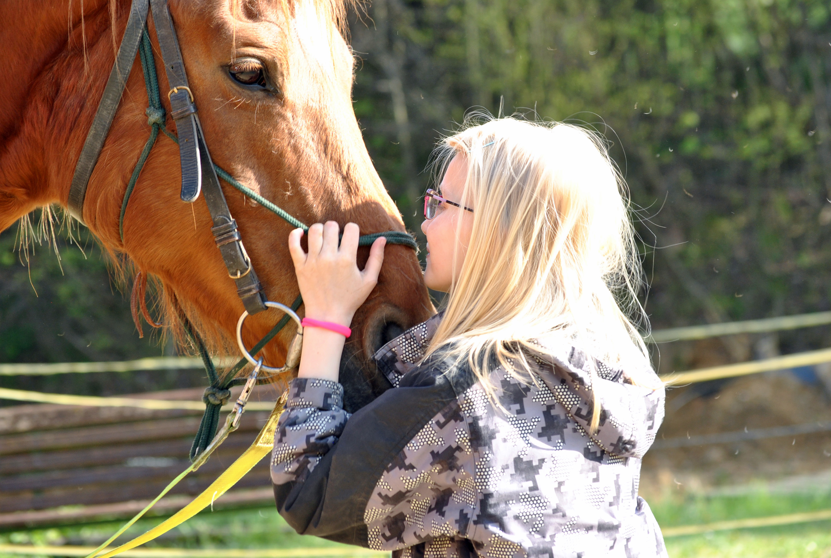 Po každé hipoterapii se děti s koňmi rozloučí a poděkují jim za pomoc.