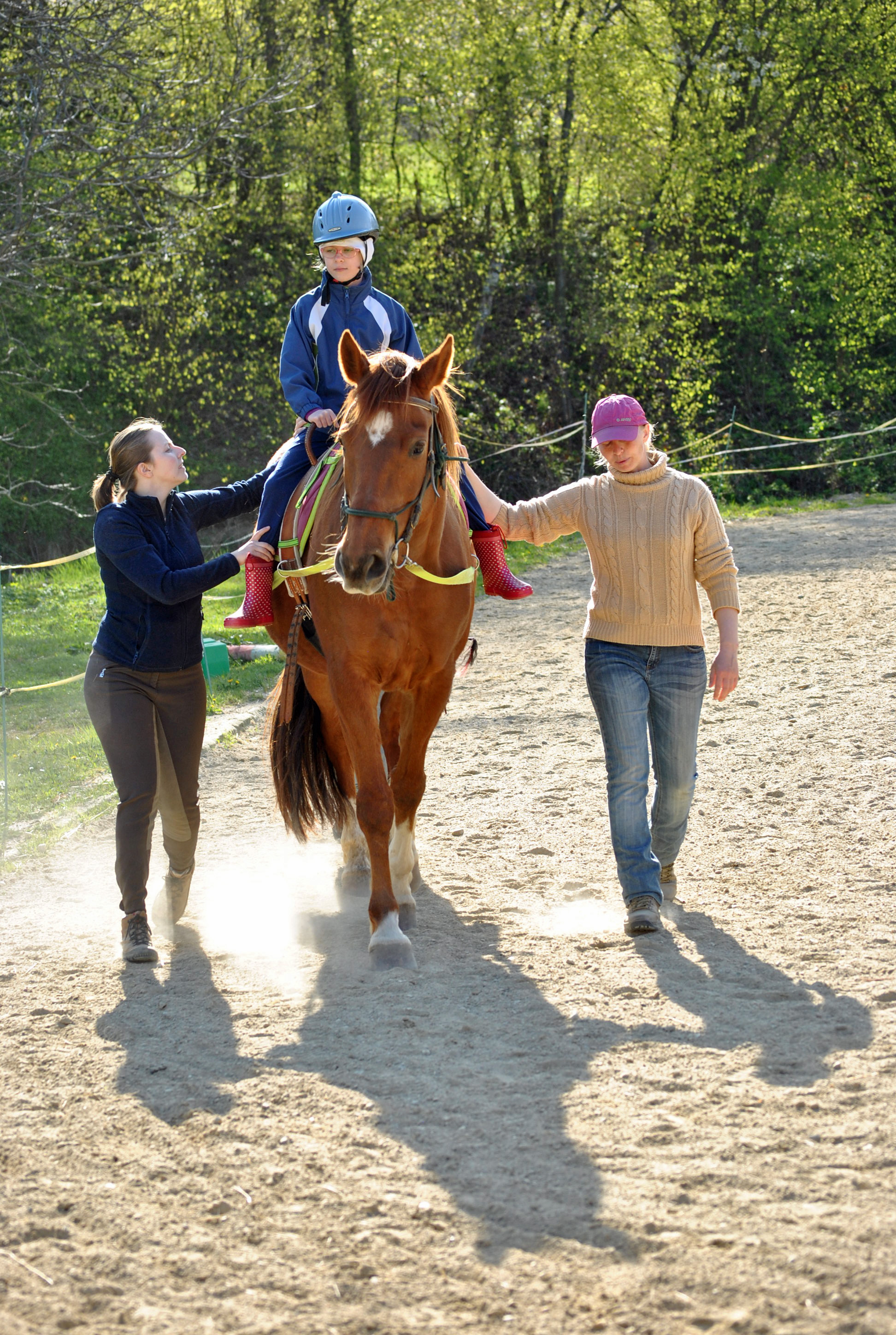 Méně vážné případy postižení, či pokročilejší klienti dovedou na koni sedět téměř samy bez nutnosti polohování. Přesto je však potřeba z každé strany koně kontrolovat jejich bezpečí.