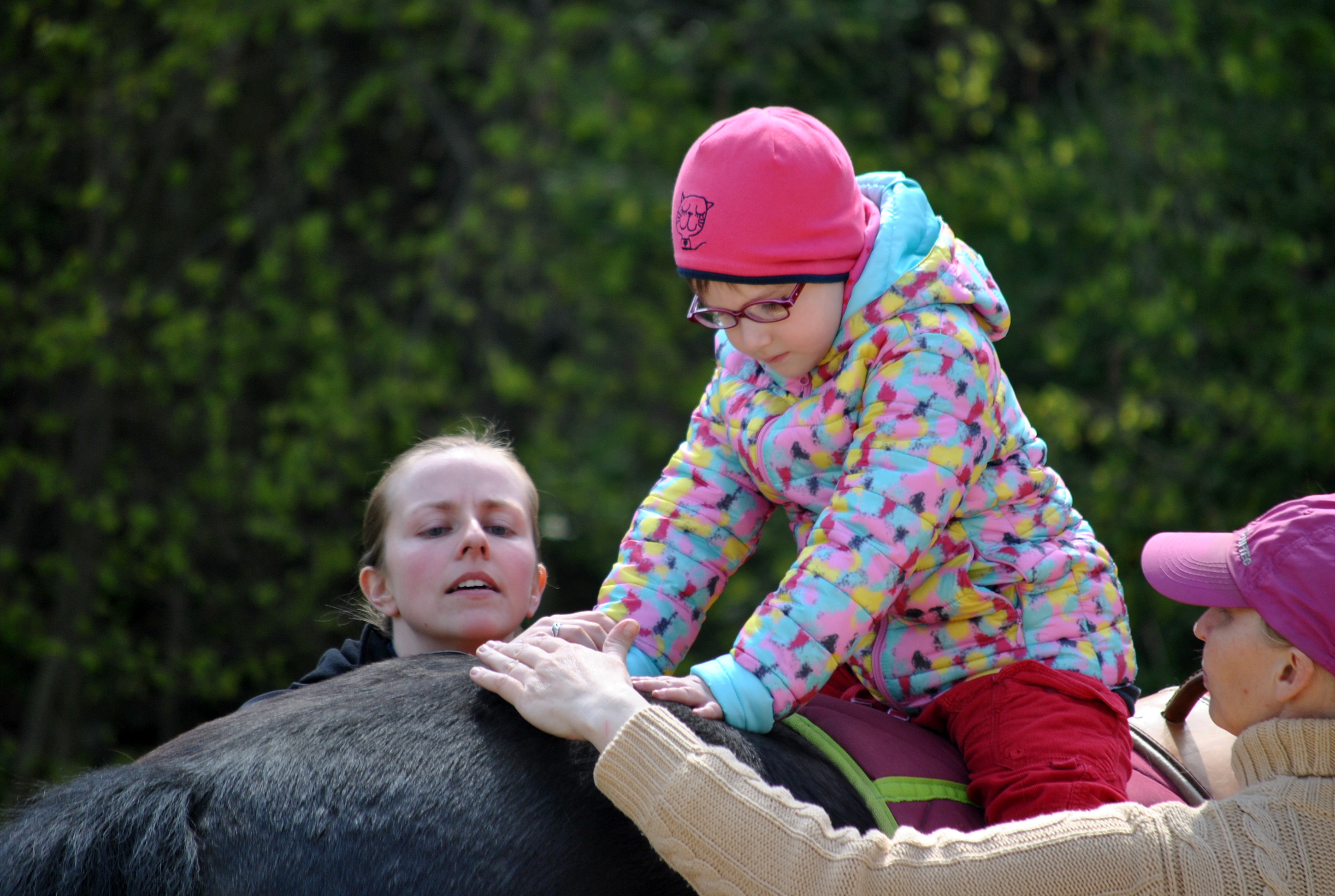 Fyzioterapeutka Hanka po celou dobu terapie bedlivě hlídá správné držení těla malé klientky. Při jízdě pozadu je důležité, aby dítě sedělo vyváženě, s rovnými zády a ruce mělo na přesně daném místě v bedrech koně.