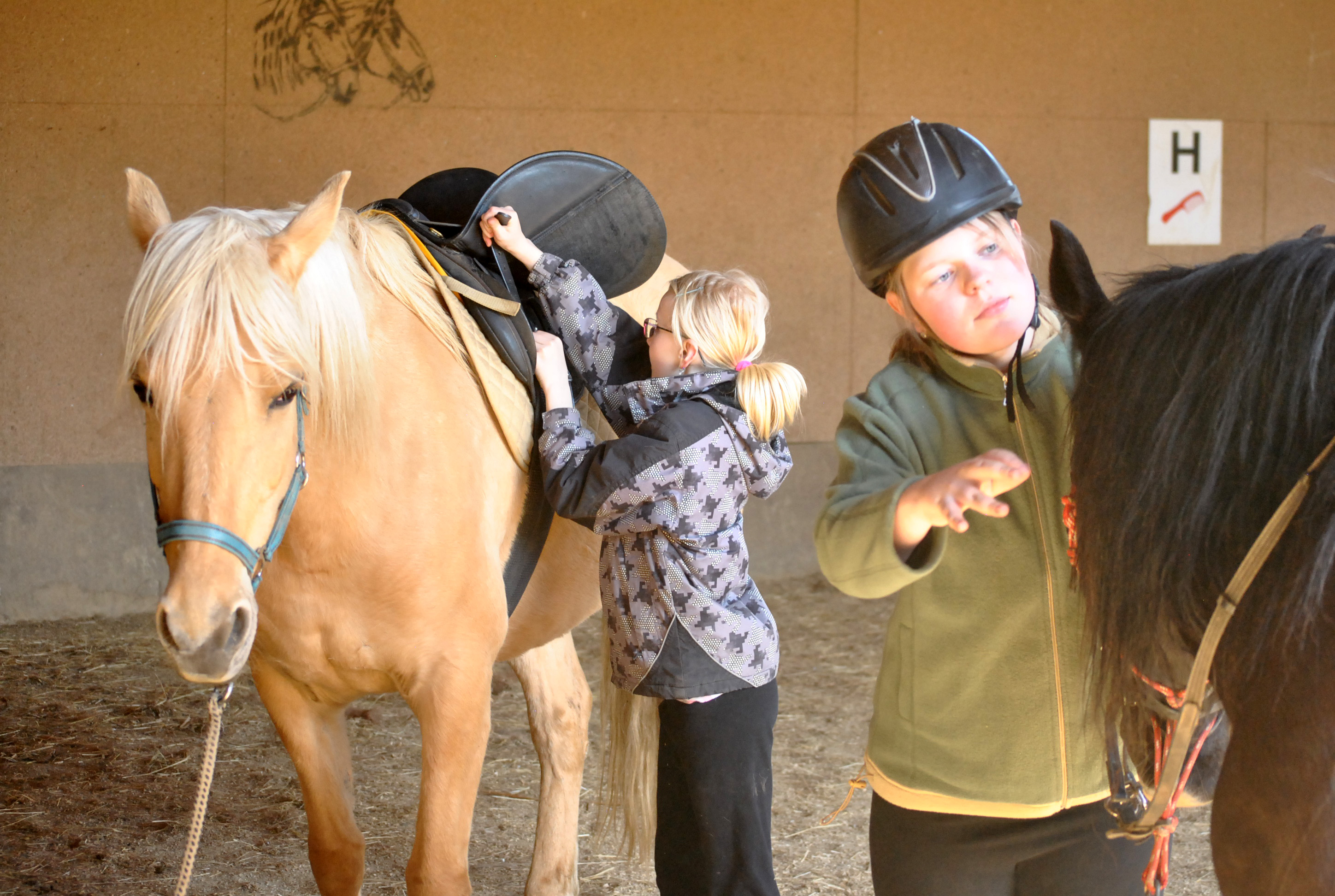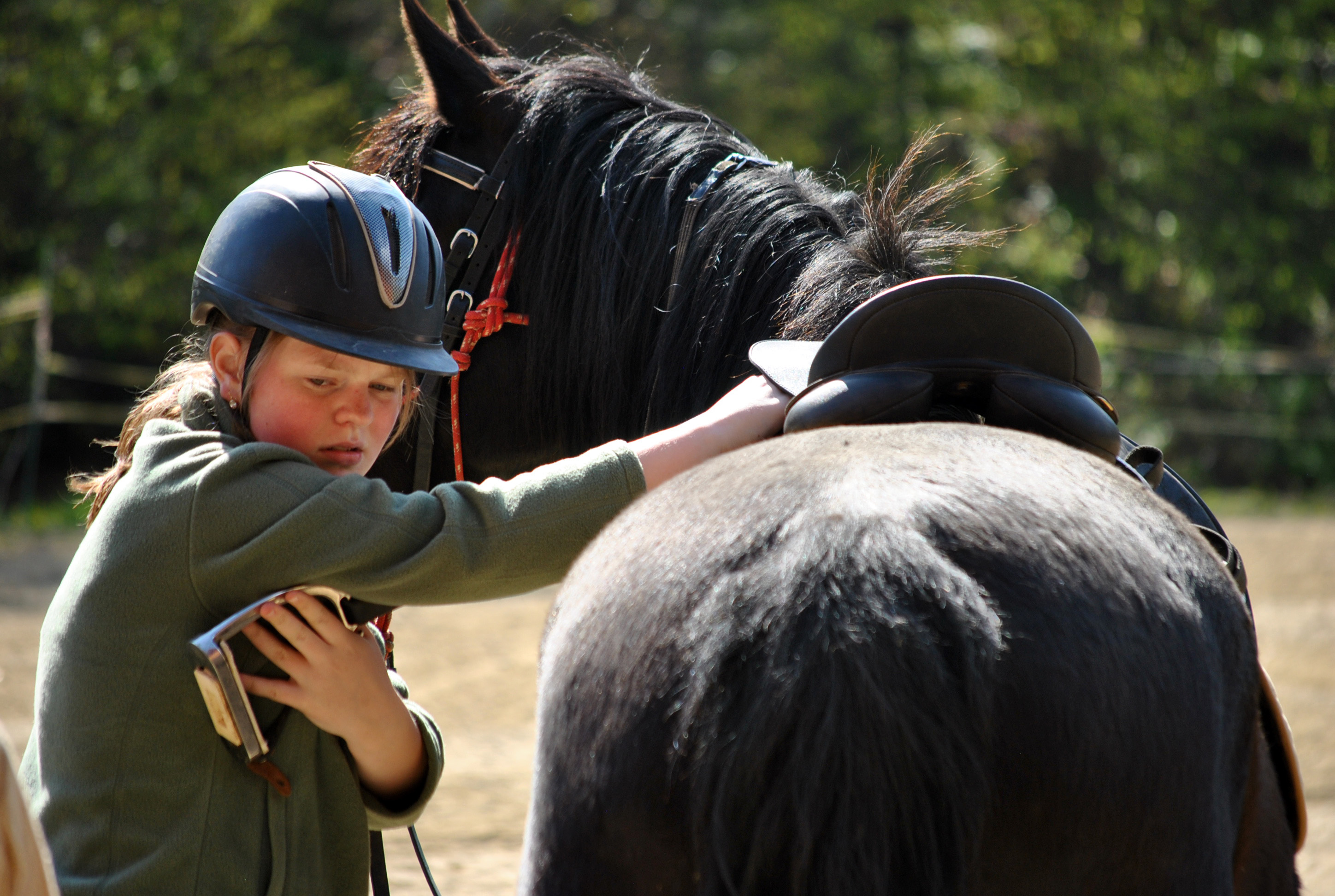Bára už si sama umí i zkontrolovat dotažení sedla, nebo si upravit délku třmenů. Jezdci vědí, že třmeny mají být dlouhé přibližně do podpaží jezdcovi ruky.