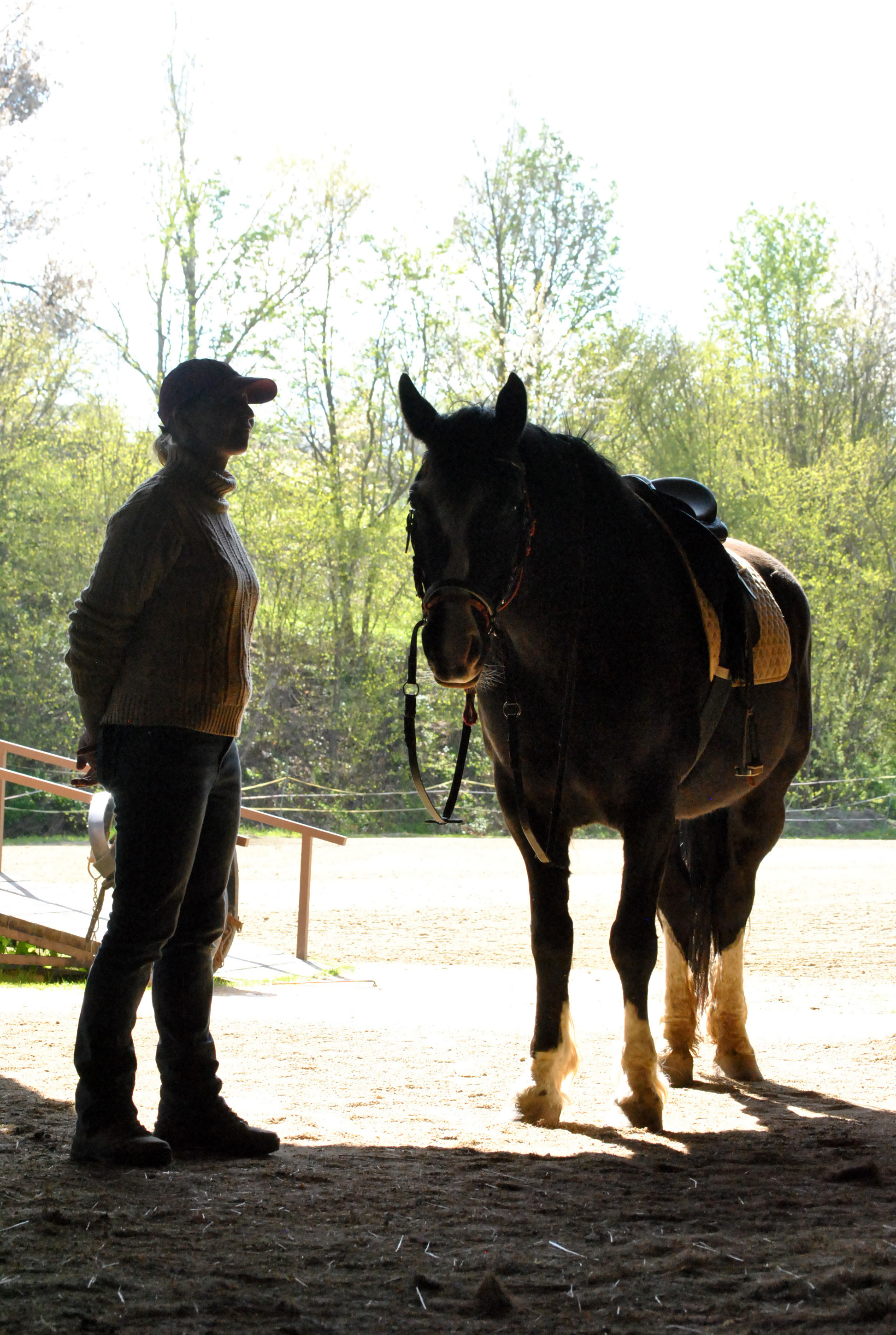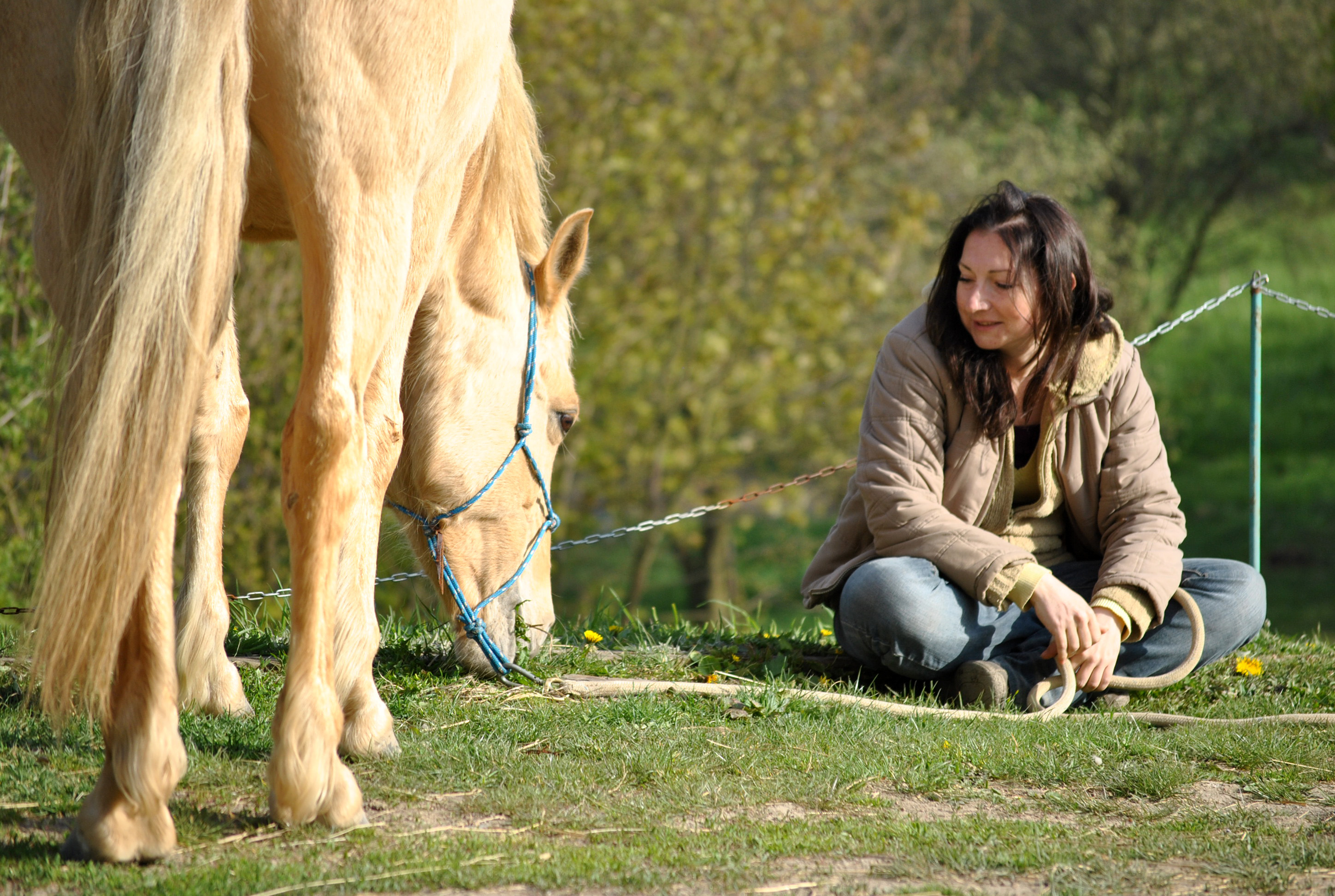 Odpočívat po fyzicky a především psychicky náročné práci potřebují nejen koně, ale také pracovníci a lektoři. Jana čerpá energii po boku Bely na slunci.