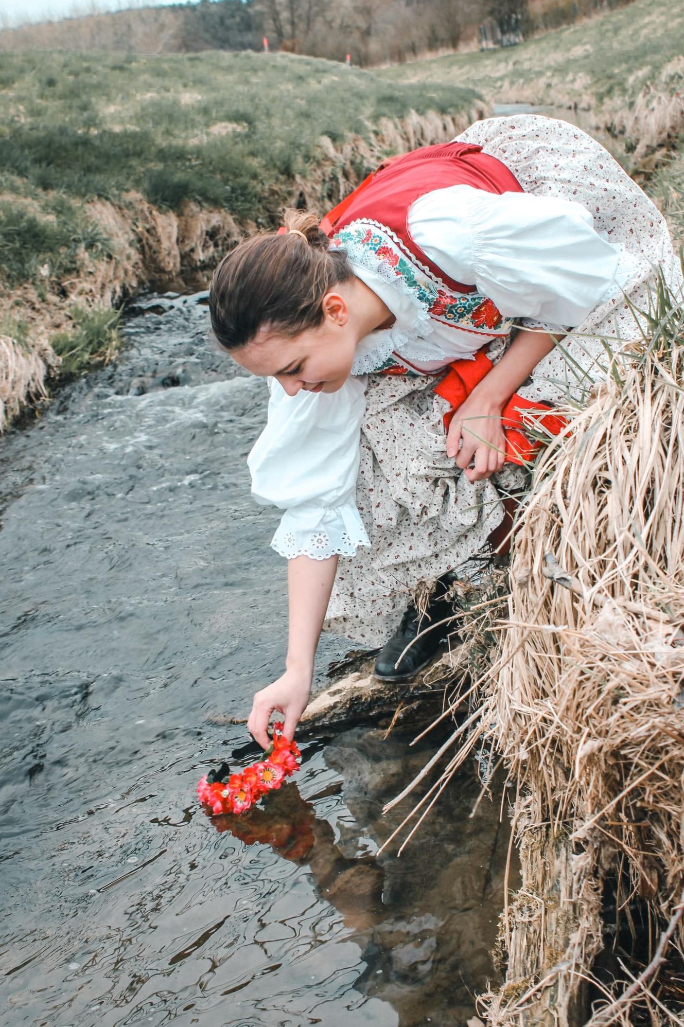 Poslední focení se uskutečnilo začátkem měsíce dubna. Jednalo se opět o focení u potoka. Zde bylo mým cílem zachytit především tradici pouštění uvitého věnečku a sbíraní bylinek.