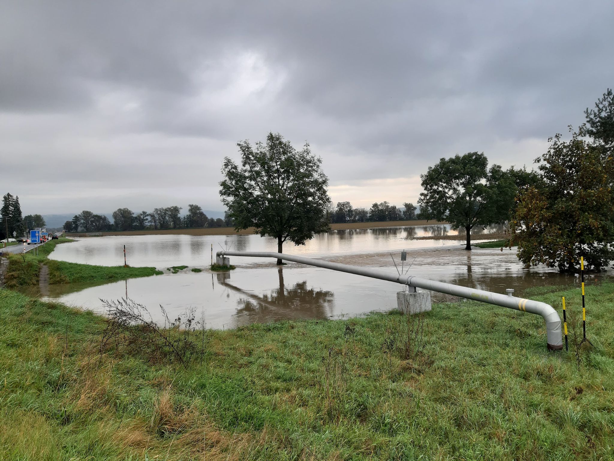 Během noci však došlo k vylití Oskavy v okolí místní části Benátky. Zde si voda našla cestu skrz pole a také přes místní komunikaci do Štarnova, kterou policisté okamžitě uzavřeli.. Tato komunikace byla neprůjezdná i celý následující den a řidiči jedoucí na Šternberk museli uzavřený úsek objíždět přes Moravskou Huzovou.