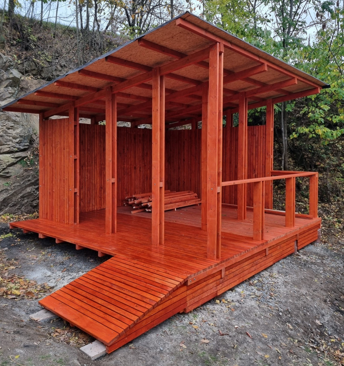 Celý projekt vznikl z iniciativy obyvatel, kteří se s podporou obce rozhodli, že místní „Ťukovku“ ještě více zútulní. Návrh přístřešku vytvořila studentka architektury letos začátem září, a krátce poté začali sousedé s přípravami. Vyrovnali terén, připravili dřevěnou konstrukci a během konce října útulnu dokončili.