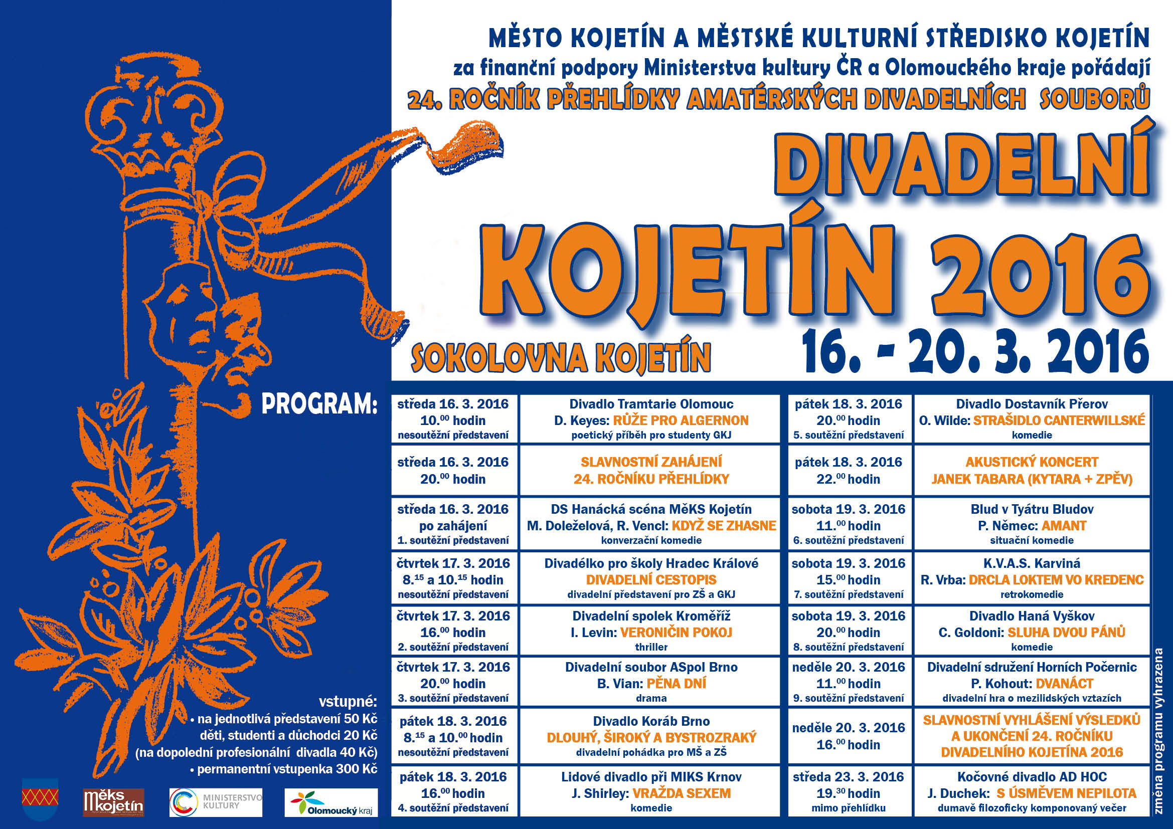 Vstupné na jednotlivé soutěžní inscenace je 50 Kč.